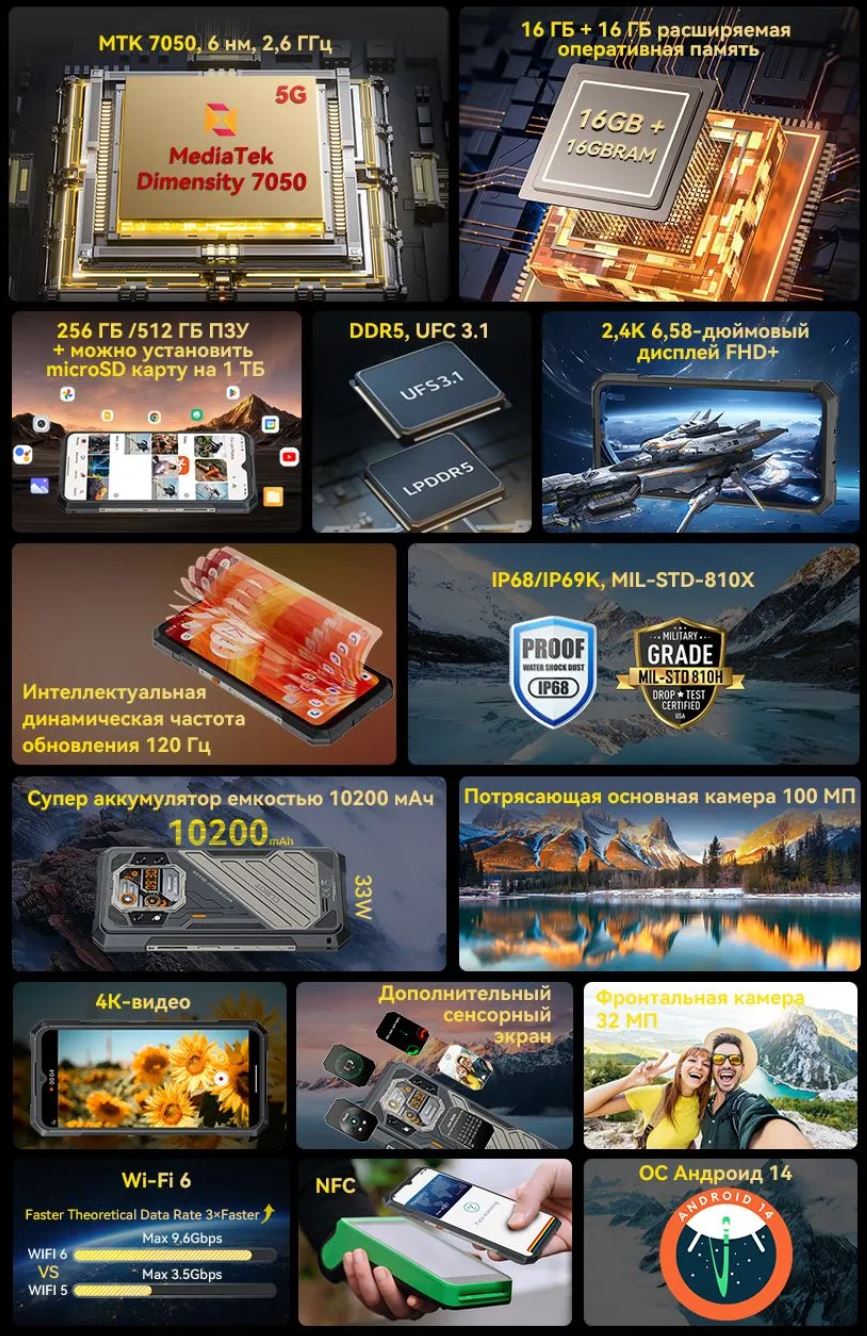 CUBOT KingKong X – прочный 5G смартфон с большой батареей 10200 мАч, вспомогательным задним дисплеем, 5G, Wi-Fi 6, 100 МП