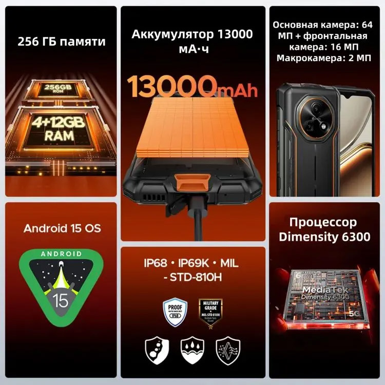 - Мощный процессор 8 ядер MediaTek Dimensity 6300